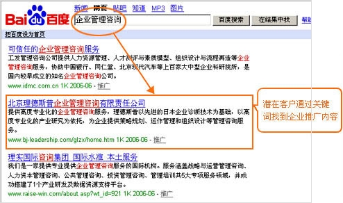 每天有(yǒu)超過(guo)1億人(ren)次在(zai)百(bai)度查找信(xin)息,齊(qi)業在(zai)百(bai)度注冊與産(chan)品(pin)相關的(de)關鍵詞後(hou),就會被主(zhu)動(dòng)查找這些産(chan)品(pin)的(de)潛在(zai)客戶(hu)找到(dao)。